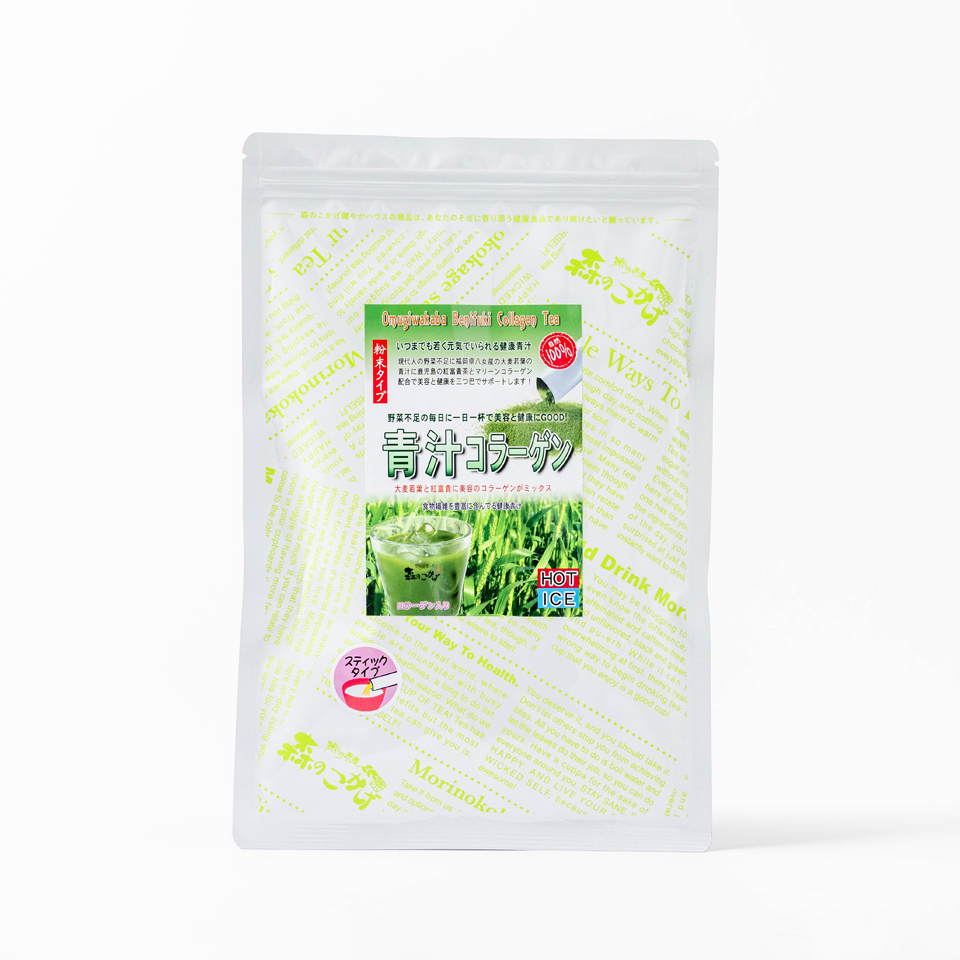 八女茶で有名な高級お茶産地で栽培した大麦若葉に鹿児島産の紅富貴をブレンド。さらに嬉しいコラーゲンをミックスしてできた健康青汁